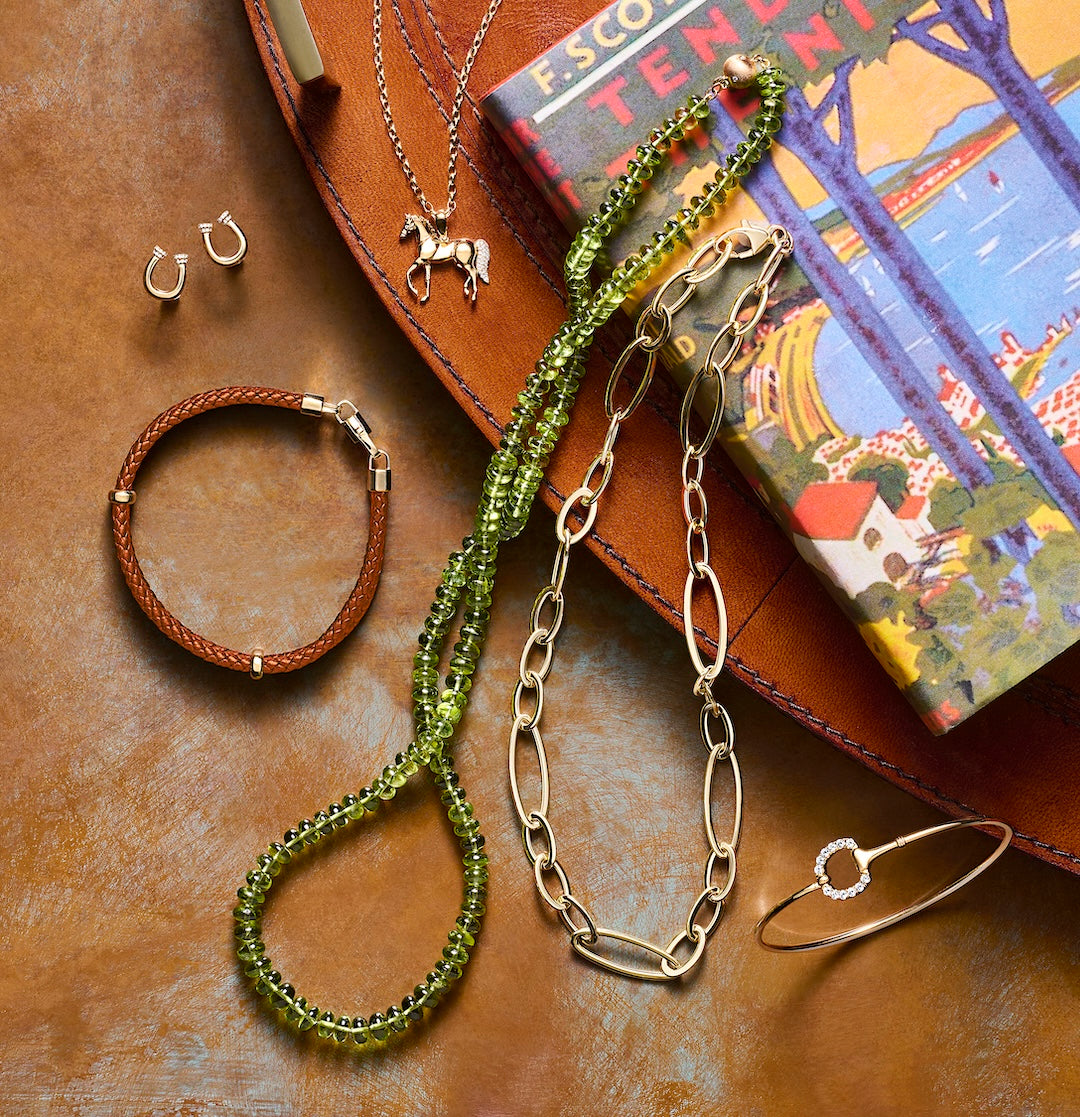 From lush green jade and rich carnelian reds to gleaming gold, our best-selling jewelry takes its cue from fall’s changing colors. Maybe all that glitters is gold.
